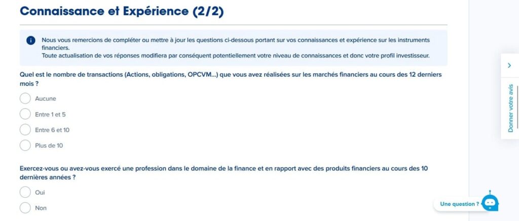 個人情報(Infos persos)を書けば、資産情報(Infos financières)を選択していきます。
