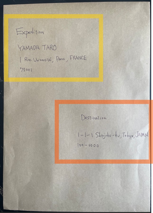 上で見ましたように、ExpeditionとDestinationを書くか、差出人の名前と住所は封筒の裏に書くと確実に届くようです。